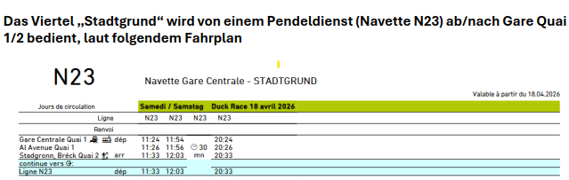 - Ne seront pas desservis les arrêts de Munsbach-Gare routière, Uebersyren-Kreizgaass, Schuttrange-Al Schëtter Mëtt et -Kanecherstrooss.